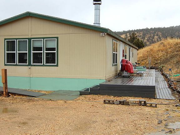 Amazing views from almost 8 acres just south of Mitchell. Privately situated above the city overlooking surrounding mountains and valley below. Nicely maintained 2005 Marlett Home featuring 2 bedrooms, 2 bathrooms plus an office/den which could be a 3rd bedroom. Open kitchen, dining area with eating bar, island, built-in china hutch, pantry and extra baking area with access to back deck area. Vaulted ceilings throughout with spacious living room accessing the front trex deck. Large family room with ample natural light, vaulted ceiling and wood burning fireplace with marble hearth and wood surround. Additional small office space in hallway. Level and compacted area for large 40 x 60 shop. Large garden area above home has water. No close neighbors but plenty of wildlife!