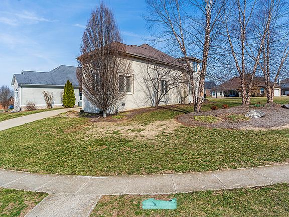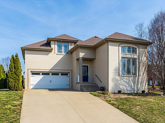 All brick stately home situated on a corner lot in ever popular golf community of Canewood. Open floor plan with high ceilings & lots of natural light! The spacious great room features a vaulted ceiling w/ exposed beams & beautiful hardwood floors. In the updated chef's kitchen you will find ample cabinet space as well as granite countertops, gas range & stainless appliances plus a butler's pantry! This layout is perfect for those who like to entertain! Your guests will enjoy the cozy window seat in the dining area! First floor primary suite has access to the patio & an en suite spa like bathroom featuring a soaker tub, oversized glass-encased shower, two vanities plus two walk in closets w/ built ins. Updated half bath & spacious utility room with counter, cabinets & sink finish out the first floor. Upstairs has three additional large bedrooms with walk in closets. Large bathroom upstairs was used for weights & treadmill. Garage has built ins, windows & exterior door. Outside you will find an oversized side yard & deck w/ beautiful landscaping. This home has a lovely presence in the evening with exterior lights & landscape lighting!
