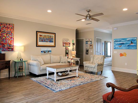 Great house!! Walk to the beach! 4 bedrooms in this wonderful house! This house has such a great floorplan! Open living area with high ceilings and crown molding. Lovely foyer entrance opens into incredibly great space! The master bath is divine, Master bedroom is oversized and light and airy. The guest bedrooms and bath are on the opposite side of the house and down a hall. The kitchen is lovely and the eating area is just the right size with large windows. Screened back porch. The back yard is fenced. This great community has the only custom-built homes and is a very easy walk to the beach or to the community pool and clubhouse!