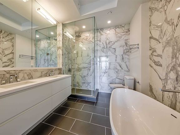 A Spacious Penthouse With Stunning South East City Views. 1500 Sq Ft 2 Bed 2.5 Bath Corner Penthouse. 10' Ceilings, Custom Italian Cabinetry, Quartz Kitchen Island, Fully Integrated Gaggenau Appliances, Upgraded Hardwood Floors, Floor To Ceiling Windows Giving 180 Degree Views Of The City, 2 South Facing Balconies, Spa Master Ensuite And Master Dressing Room With Custom Built In Closet. 2 Parking Spots And 2 Lockers Included.