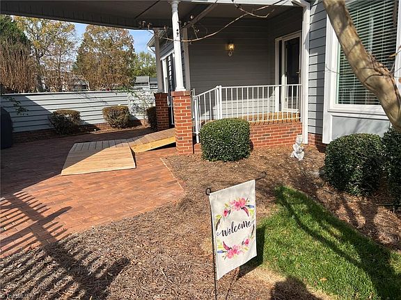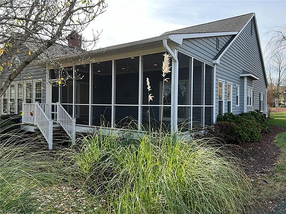 Here's your chance to own the only free-standing home in St. George Place! Located on the 16th Green of the Bermuda Run Country Club West Course! 1 Level Living, Generous Room Sizes, Great Floor Plan & 9' Ceilings. Living Room w/GasFP opens to Dining Room & Sunroom. Cathedral Ceiling Sunroom w/Wet Bar, 2 Stained Glass Windows & Door to 11'8" x 22' Screened Porch looking at the 16th Green! Big Kitchen w/Stainless Steel Appliances, Plenty of Cabinet Space & Counter Tops, 2 Pantries, Desk & Bay Window Breakfast Area. Huge Primary Suite w/Sitting Area & Door to Screen Porch. 2 Walk-In Closets. Luxury Bath w/Remodeled Shower, Jetted Tub & Private Water Closet. 2nd Bedroom w/Private Bath & Cedar Closet. Welcoming Entry Hall. Half Bathroom. Laminate Wood Floors. Fenced Front Brick Patio, Gardens & Front Porch. Oversize 2 Car Garage: 20'9" Deep & 24' Wide, 2 Storage Closets & Floored Attic. New Heat Pump & Dishwasher 2023. HOA Dues include Public Water & Sewer. BRCC Membership required. LOOK!!