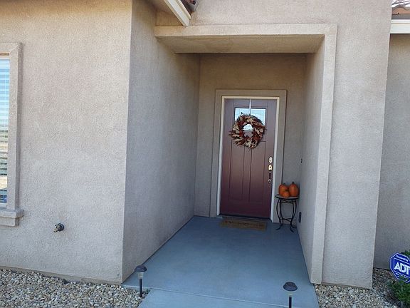 This home is still a "baby": less than 2 yrs old! This College Heights split floor plan w/xeriscaped front yd is all ready for new family!Inside engineered hardwood floors welcome you thru entry to great rm w/cathedral ceiling & fan.9' ceilings everywhere else.Opens to kitchen w/granite counters,pendant lites;ss farmhouse sink,range, mw,dw &lge pantry.Dining rm looks out to backyd.Back to entry,double drs open to convertible office, den,or 4th bedrm? as needed.Down the hall is laundry rm.Secluded mstr suite on west end is carpeted;tiled bath has 5 ft soaking tub, 2 sinks w/granite counters, 5 ft tiled shower,private toilet plus huge walkin closet!Back to east wing:2 carpeted guest bedrms separated by guest bathrm w/soaking tub & coat closet.Giant backyd features covered patio, block wall on east, graveled sideyds(shed also!),retaining wall(water plumbed here),& lots of real grass!Colorful planters against house.Ground mted A/C unit Seer 14.No worries!!On roof are 3.49 killowatts (11 panels)of owned solar panels!Yrly cost to SCE:only $150!!!Really! Run a/c all you like!!Garage totally finished;quick & efficient tankless water heater.R-38 insulation in attic;R-15 in walls.Tiled roof