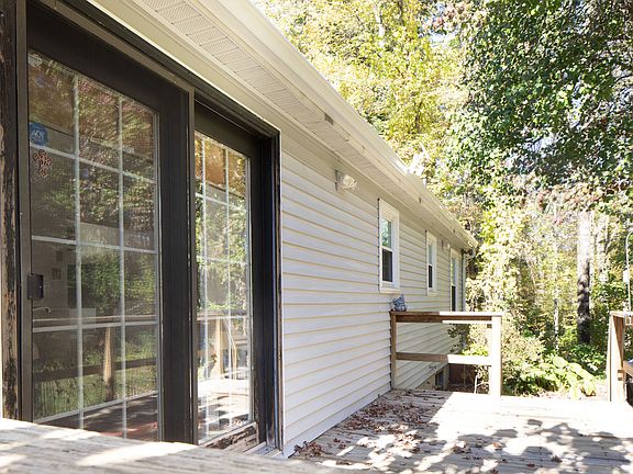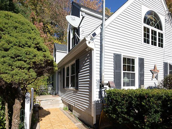 Set back from the road on a shared driveway, this 4-bedroom, 2-bath Cape offers a peaceful setting with a large, mostly wooded lot and plenty of space to expand your private yard area. The main level features two bedrooms, a full bath, and a freshly painted living room with beautiful cherry plank flooring. The kitchen and dining spaces flow nicely, providing a comfortable layout for everyday living. Upstairs are two additional bedrooms and another full bath. One of the upstairs bedrooms, highlighted by a large Palladian window, makes an ideal den or cozy retreat and features a pellet stove for added charm. The home includes a second pellet stove on the main level, though they have not been used in some time. The large, dry basement with hatchway access offers great storage or workshop potential. Recent updates include a newer roof and gutters. With a little TLC, this home has wonderful potential to shine. Conveniently located close to town amenities while offering privacy and space to enjoy nature. All room sizes are approximate.
