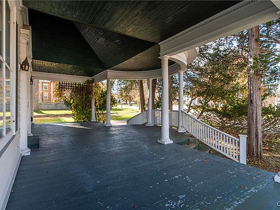 Beautiful fireplaceFront porchSelf-contained apartmentRaised cherry-paneled wallsOversized bedroomsBronze statue lampGrand staircase
