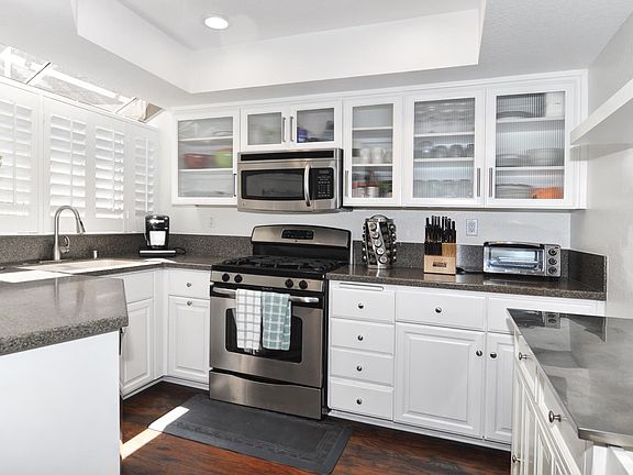 Beautifully upgraded Dual master bedroom town home in Laguna Beach Audubon. Walk in to this beach style open floor plan Town home with Plantation shutters and Wood Floors throughout. Remodeled and redesigned kitchen with floating shelves, new cabinetry, stainless steel appliances, dining room off kitchen, Living room with vaulted ceilings, statement stone fireplace, recessed lighting, plus an additional adjoining space for a home office/playroom or additional sitting area. Upstairs features stairwell with skylight for natural light, dual en-suite bedrooms, with vaulted ceilings and master with two closets, dual sinks, Jacuzzi bathtub. Secluded and fenced outdoor patio backs up to hillside with mature tree's. 6 miles to world class beaches, dining, art, Pageant of the masters, sawdust festival, close to freeways, bus route and toll road. Dual single car garages, one attached with laundry, one detached with plenty of storage. Stylish and bright home with Community pool, spa, BBQ, hiking trails right outside your door.