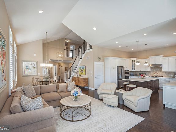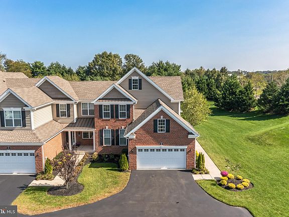 Fall in love and enjoy luxury living at its finest! Exquisitely appointed with high end finishes, this popular, end unit Kinkade model built in 2018 boasts newly upgraded appointments throughout along with a fabulous, sun-drenched open floor plan! This stunning home opens with a dramatic staircase and open concept living space lined with large windows topped with transom windows and soaring ceilings, creating a luminous, sophisticated atmosphere. The pristine and neutral palette contrasts with the rich, wide plank hardwood flooring. The ultimate chef's Kitchen awaits with fantastic expanded 10.5'x4' center island, striking quartz countertops, tiled backsplash, newer stainless sink, instant hot water, stainless steel appliance package including newer GE refrigerator, KitchenAid built-in microwave, wall oven, dishwasher, 5 burner gas range with hood, plus wine refrigerator. The beautiful upgraded white Century cabinetry offers ample storage, soft close drawers with wood organizers, pull out shelves, along with display cabinets and pantry cabinet addition with pull out shelving. Adjacent is the expanded Family Room with cathedral ceiling and gas fireplace with marble surround and wood mantle that graciously flows into the Dining Room. Double doors open to a private Den/Office with elegant grass cloth wall coverings and recessed lighting. Living is easy with a main level Owner's Suite, featuring quality carpeting, tray ceiling enhanced with decorative crown molding. The owners transformed the closets to include a 2 door closet, 2 walk-in closets plus a linen closet, all with custom shelving. Relax in the spa-like ensuite bath clad with crown molding, newer medicine cabinets, private water closet, double sink vanities with custom center drawer addition for extra storage, frameless stall shower with 2 shower heads, tiled surround and built-in bench. A chic Powder Room with crown molding and upgraded vanity with marble countertop and doors, upgraded Laundry Room with cabinetry and sink with quartz counter top, and convenient Mud Room with beautiful wood organizers and bench complete the main level. Family and guests will be well accommodated on the upper level offering a spacious loft with hardwood flooring to enjoy reading or watching TV. The comfort of the 2nd and 3rd bedrooms are enhanced with a cathedral ceiling and spacious walk-in closets. The updated hall bath features an expanded vanity, subway tile surround and glass shower door. Additional amenities include plantation shutters on 17 windows, window tinting modern designer light fixtures and ceiling fans, recessed lighting, railings added to front walkway, landscape lighting, security system, 2 car garage with keypad and inside access, large driveway, plus a sprawling basement for storage. Relax and entertain in the fresh air on the maintenance-free deck plus a custom paver patio with gas grill overlooking the surrounding manicured lawn & mature trees on the side and rear of the property! Living is easy and convenient with the HOA taking care of the lawn and snow removal. Indulge yourself in the resort-style amenities. This prestigious community offers walking / biking paths, a club house, outdoor swimming pool, bocce court, putting green, horseshoes & more! Centrally located, just a few minutes away are major access routes, Laurel Creek's 18 hole golf course, plenty of shopping, restaurants & more!