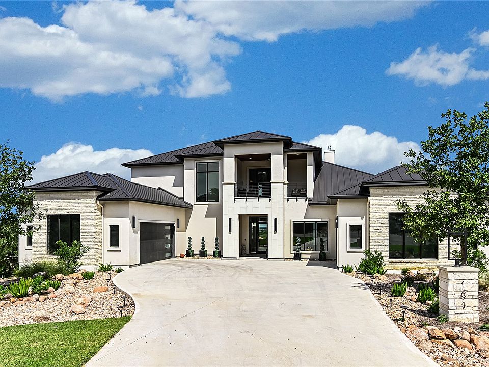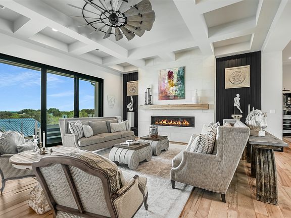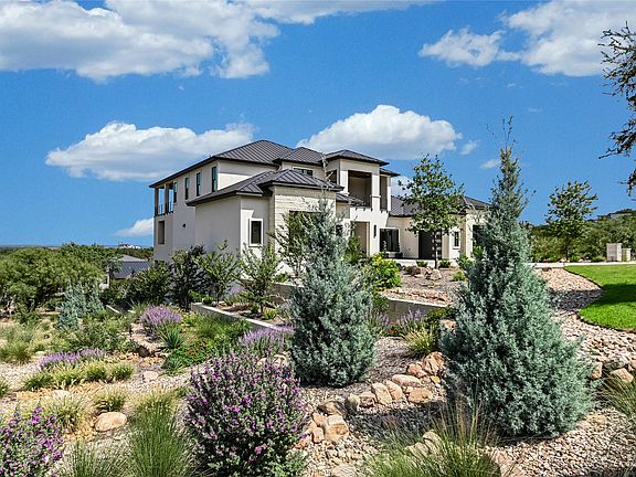 AWE INSPIRING VIEWS OF LAKE LBJ, APPLE ROCK GOLF COURSE, & THE SCENIC HILL COUNTRY from every indoor & outdoor liv area in this AMAZING custom home perched high on 2 lots in desired Applehead West. Upon entering this 3 level Transitional-Modern masterpiece built in 2024, you are greeted w breathtaking views, abundant nat light due to high ceilings, an open flrpln, walls of Western (Anderson's top tier) metal & glass windows, doors & a wall of sliding glass doors. The home has a perfect balance of modern lines, warm textures, light colors & a very functional flrpln accessed by stairs or elevator. The quality & unique details start at the frnt door & nvr end! Custom natural Hickory wd floors throughout, designer quartz & marble throughout, thoughtful use of limestone, wd beams, & other specialty millwork. Another unique & rare feat is the custm made, hand honed Spalted Pecan mantle & exposed shelves in the LR. The specialty designed fully equipped Bar in the upper level LR has a solid walnut island countertop & walnut shelves. The gorgeous kitchen complete w Emtek hardware is a chefs delight & boasts top tier Thermador appl incl a “pull-less” or soft touch refrigerator & freezer…be sure not to miss the coffee bar & catering pantry. Comprised of over 6988 sqft., w 4 Bdrm stes, 4.5 Bths, + an attchd 1 Bdrm, 1 Ba Casita, Library-Study w FP, lg liv areas on all 3 levels, a sep work out studio w access to the pool & pvt patio, 5 balconies, 1 lg turfed deck w putting green, mult patios, a sleek pool & spa encompassed by an abundance of landscaping & functioning gardens, 3car split garage & MUCH more. The Prim Ste is a major highlight of this home. The home’s unique spaces & quality custom features should be seen to fully appreciate. The LOCATION - just a short walk or ride to the amenities of Caprock, the arch. design & finishes, surrounded by the natural beauty of Lake LBJ & Hill Country, & the competitive price, makes this one of the best luxury homes avail in HSB.