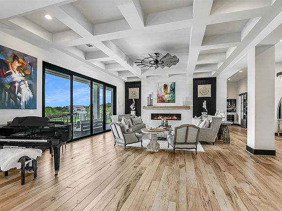Modern linesApple rock golf courseHigh ceilingsLandscaping and functioning gardensDesigner quartz and marbleSliding glass doorsScenic hill country