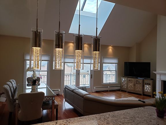Port Liberte Penthouse Luxury! Spectacular views of Manhattan, Statue of Liberty and the Hudson River are yours from the balcony of this recently totally renovated 1915 sf top floor penthouse duplex with triple width balcony from which to enjoy them! Great Room features include floor to ceiling windows for maximum views and sunlight, cathedral ceilings, dramatic skylight, wood floors throughout and wood burning fireplace. Large kitchen gallery with peninsula, wood cabinetry, granite counters and open and expansive workspaces from which you will enjoy creating amazing meals for your family and friends. Guest powder room on social level ensures the comfort of your guests. The intimate level of this home boasts a super-sized master suite with walk-in dressing area, its own totally renovated quarry stone bath with oversized frameless glass shower. Two other generous sized bedrooms with renovated spa bath with natural stone finishes. Excellent closet and storage space throughout. Other features of this must-see-to-appreciate home are in-home laundry room with full sized washer/dryer, zoned heat and central air, included garage parking and full Port Liberte amenity package including 24 hour gatehouse security, professional style fitness and wellness facility, two outdoor pools, tennis courts, basketball court, outdoor play area, fenced dog run, designated green spaces, free guest parking and idyllic waterfront promenades. Also available onsite are massage and personal training in the Fitness and Wellness facility, Port Liberte Wine & Deli, Dry Cleaners, dental practice, law offices and Liberty Montessori: The Place For Learning which is a favorite and trusted curriculum based nursery and preschool for many Port Liberte families. Additionally, there is onsite ferry to lower Manhattan and Monday through Saturday Shuttle to Grove St PATH. Just seconds from major highways and tunnel and mere minutes to Newark Liberty Airport promise that yes, you can easily get there from here! Maintenance includes heat, hot water, water, garage parking and use of all amenities.
