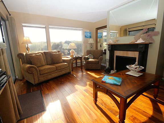 PRIVACY! LOCATION! Located in a private, end building of Shorebirds, a gated community. Nestled in the warm sand dunes, one can enjoy sunrise and sunset views from this south facing home. This two bedroom plus two full bathroom condo home is ramp accessible from the parking lot and adjacent to a beautiful beach trail for those who do not wish to use the private beach access steps. This well appointed, condo enjoys southern exposure that provides year round warmth and lots of natural light. The home has been recently remodeled with hardwood floors, hand picked granite counter tops, wood burning fire place, new appliances, plumbing fixtures and tastefully chosen built-in shelves. The furniture is new and is included with this sale. May be a vacation/long term rental a primary home or keep vacant for your private beach hideaway. Homeowner's pets are welcome here so bring the beloved family dog along to enjoy your beach home with you.