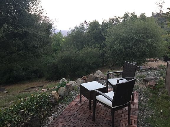What a lovely home! Sit outside on the large rear deck while taking in the stunning views and listening to the babbling of Tillie Creek and it's tributary Shirley Creek. With the wonderful setting this property is in it just truly feels like home. The house has been tastefully updated with Wood Laminate Floors, Berber Carpets, a Wood Burning Stove, updated Guest bathroom with washer and dryer hookups, Window Coverings and other improvements. Two Bed, 1.5 Bath, with a split wing floor plan and a very large open Kitchen and Dining area leading out to the back deck, the floor-plan is very user friendly. Nothing to do to this house but bring your toothbrush and BBQ! It's move in ready! On the outside of the home you will find attractively kept grounds with ample parking both at the front and rear. There is also a shed with power towards the bottom of the property and the creeks even have swimming holes! Pala Ranches is a lovely neighborhood dotted with Oak Trees and with beautiful views and creeks and wildlife. If you are looking to have a home out in the country in a great spot and at a great price, this is the one for you!