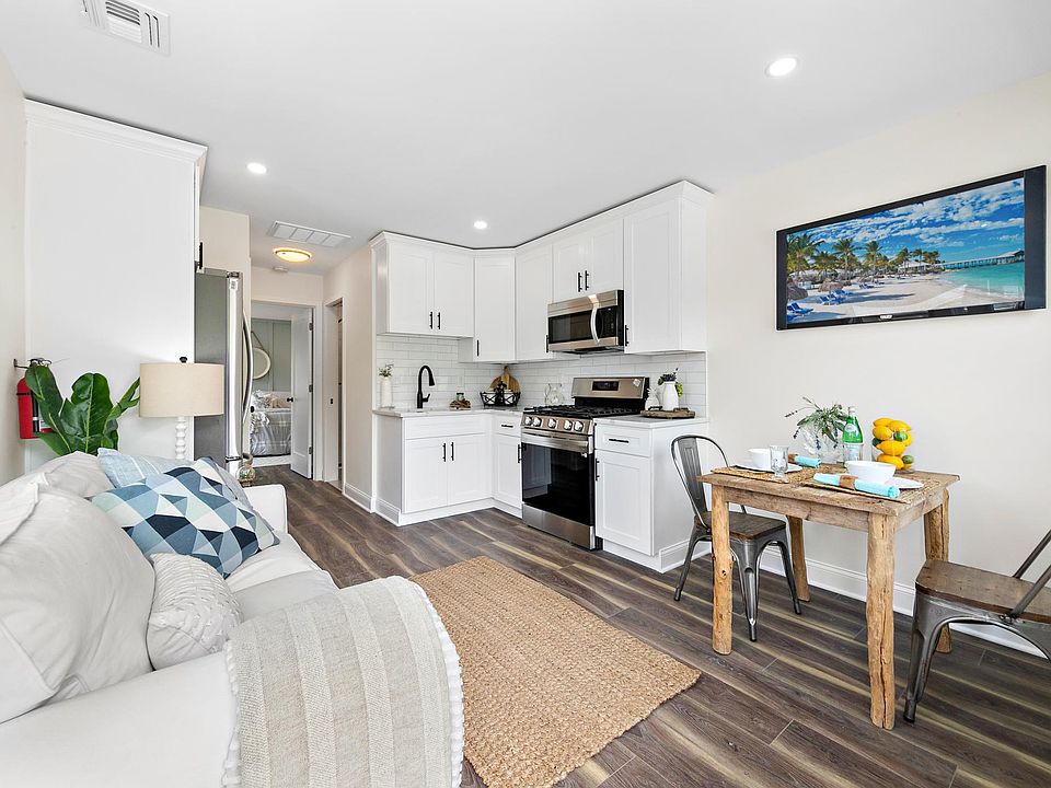 Newly rebuilt & raised 1 bedroom, 1 bath apartment with private beach access. This building contains 4 units, all 1 bedrooms, nearly identical. Each unit comes with a 1-car garage, shared common area usage & shared private beach access. Don't miss this opportunity. 4 separate units available. Annual or multi-year leases. Tenant required to have background & credit check. Tenants insurance required. Tenant responsible for gas, electric, & water charges.