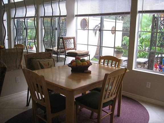 Most popular and open floor plan in the complex. Lovely high ceiling in living areas and 9 ft ceilings in bedrooms. Two master suites upstairs with solid hardwood floor allover and stairs. One bedroom/office downstairs. Tile floor over the main level. Granite kitchen counter top and GE stainless steel free stand range. Fireplace in the living room. New central heater and new water tank. New dishwasher/Microwave/Stove. Quiet and upper scale neighborhood with private school (St Ann's) nearby. The interior is light & bright, excellent Southern exposure. The private backyard has rock finish stamped concrete with fountain etc. An interior laundry with abundant storage space. The oversized, finished garage is about 500 sf, and has a large workbench with a wall of storage cabinets, counter space & peg boards. Quiet location with gated access to the Ocean Ranch Center and another shopping center across the street with bank, supermarkets, restaurants, theater and shops etc. Only 2 miles to Dana Point Marina, Pacific Ocean, Salt Creek Beach and South Laguna. No Smoking Allowed inside the house.