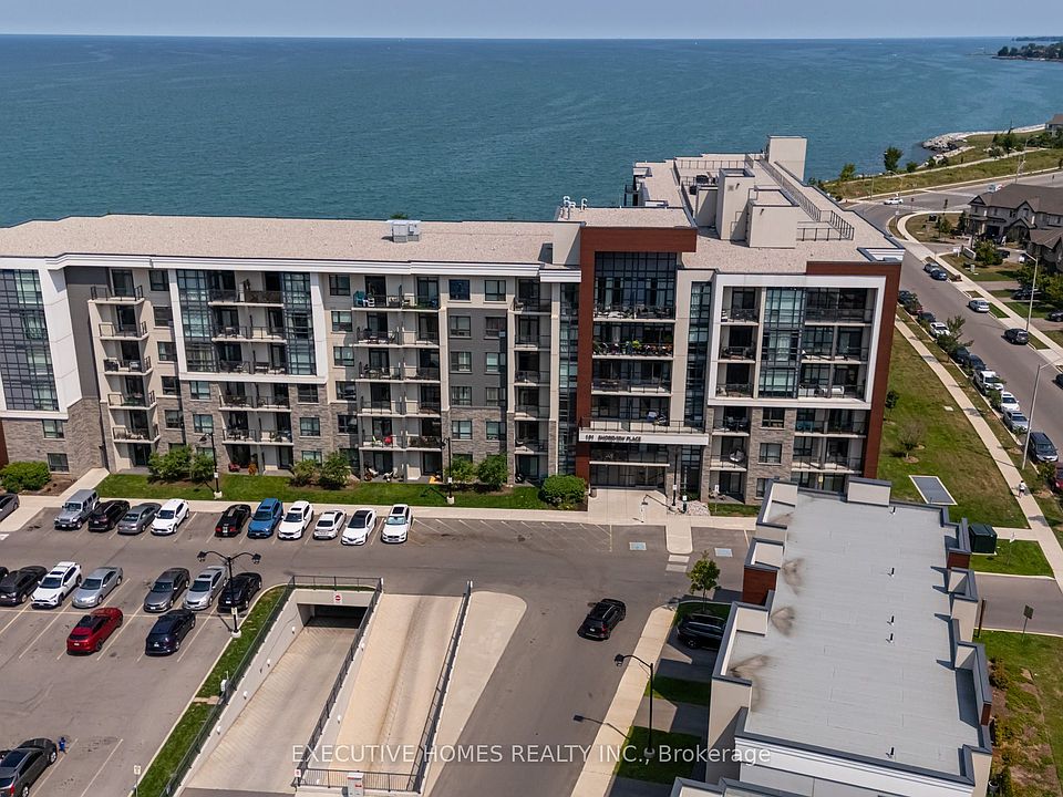 Welcome to Sapphire Condos by award-winning builder New Horizon, where luxury meets lakeside living in the heart of Stoney Creek. This beautifully maintained 1-bedroom suite offers stunning views of Lake Ontario from your private balcony. Featuring an open-concept layout with upgraded tile, wide-plank laminate flooring, and quartz countertops in both the kitchen and bathroom. The modern kitchen includes stainless steel appliances and a breakfast bar, with convenient in-suite laundry. This energy-efficient geothermal building offers premium amenities including a fully equipped gym, party room, rooftop terrace, bike storage, underground parking, and a storage locker. Located just off the QEW, steps to the lake and walking trails, and minutes to Fifty Point Conservation Area, shopping, dining, and all major amenities. Ideal for first-time buyers, downsizers, or investors don't miss this opportunity to live in a vibrant, waterfront community.