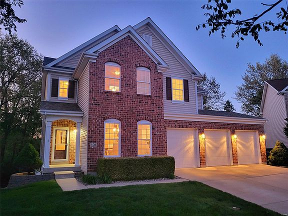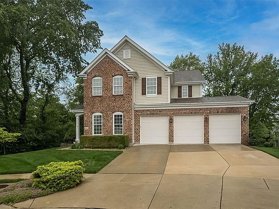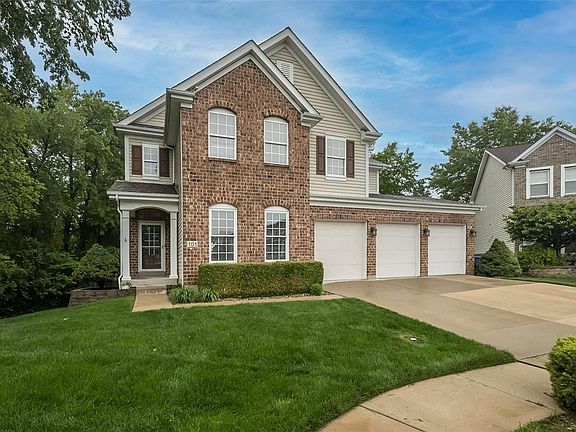 Gorgeous, unique, cul-de-sac home in Francis Howell Schools! Gourmet kitchen features 42in maple cabinetry, island, granite counters, stainless appliances, walk-in pantry. Open plan flows to wood floored breakfast room and into great room with fireplace & 5 window bay. Lovely dining room, powder room & angled staircase complete main level. Upstairs, large owner suite opens to a sitting room with a 2nd cozy fireplace; luxury 12x12 bath features dual vanities, spa tub & separate shower, stylish tile flooring. HUGE master closet with customized storage. Additional spacious bedrooms, bath & upper level large laundry room. Walkout finished LL has additional bedroom, bath, & gathering areas. Designer Millwork, Arched Panel Doors & Custom Upgrades. Enjoy entertaining on the 10x16 deck that overlooks a treed view & large patio. Oversize garage, built-in storage, 3 carriage doors, Desirable subdivision, close to Hwy 94- convenient to everywhere! Updated roof/major systems. HSA Home Warranty.