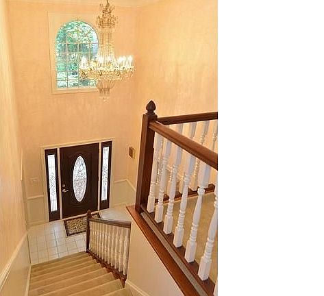 Dual master suites on 1st and 2nd flrs.Formal living rm could easily be a study/office, library, or a sitting rm for master bdrm suite. Formal dining rm has hardwood flooring & chair & crown moldings. Kitchen & breakfast rm feature lovely views of pool, deck & impressive brick fence that surrounds the pool & rec area. Lot extends well beyond fence. 40 yr architectural shingles.