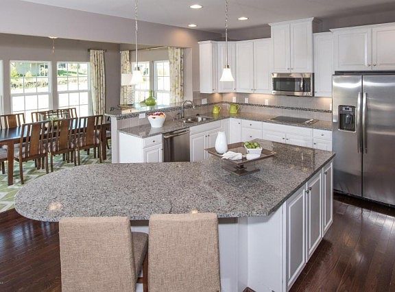 - Upgraded kitchen with 42'' cabinets with crown moulding, granite countertops, gourmet island, tile backsplash, and stainless steel appliances- Upgraded trim package- Hardwood flooring in the foyer, powder room, kitchen, morning room, and mud room- Luxury owner's suite with tray ceiling, soaking tub and glass stall shower- Gas fireplace in the family room with raised hearth- Finished basement-And much more!