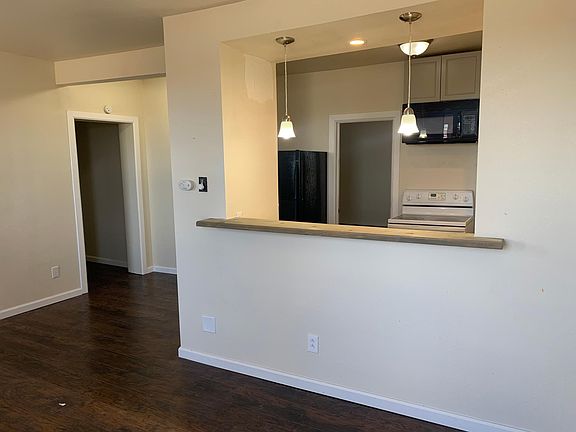 Available May 1st. Remodeled upper unit of apartments in town of Simla. Reserved parking spaces for tenants. 2 bed, 2 bath. Each bedroom has their own attached bathroom. Kitchen appliances include refrigerator, oven/range, microwave. No dishwasher or washer/dryer hookups. Wood laminate flooring in family room and kitchen. Bedrooms have carpet. No fenced backyard. Must apply through Zillow for background check, credit check, and rental history before showing. Video tour available upon request. Tenant responsible to put electricity and internet/cable in their name. There is an additional $75 utility fee for water/sewer, propane, and trash. Total monthly rent is $1,050. Absolutely no smoking allowed inside. Approved pets require a $300 pet fee per pet and $35/month pet rent. This is an upper unit with no direct access to yard for pets. Minimum credit score of 600 and 2 year job history required for all applicants. Looking for minimum 2x rent in monthly income. Must apply through Zillow for background check, credit check, and rental history before showing. Video tour available upon request.