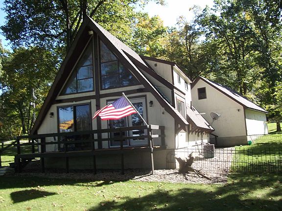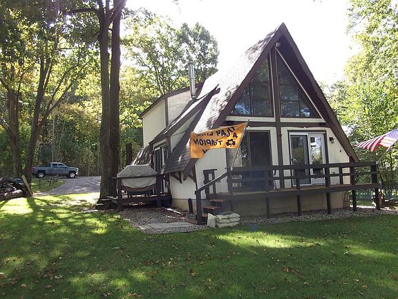 This well maintained two bedroom two bath A-Frame home is nestled on Lake Minifenokee on a well landscaped lot with mature trees. The home is on a county maintained road on a peaceful and secluded lot that has 100 feet of frontage. The attached oversized garage is great for storing those lake toys and the unfinished attic area above the garage offers a lot of possibilities. Home was completely gone through in 2014 with new wiring, new furnace/A/C, new flooring, foam insulated and kitchen appliances. Ready for the new owner!