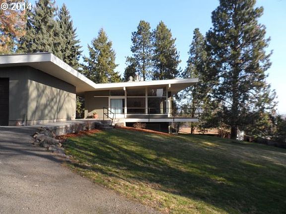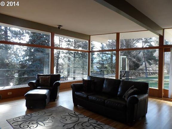 Beautiful mid-century modern home w/comfortable living plan. Beauty of the original & comfort of the modern. Living room wrapped with windows to enjoy deck & view! Huge master w/his & her dressing rooms & closets. 2 large bdrms in basement, walk out family room w/fireplace, kitchenette. 3 garages, fenced, small pasture. A must see!!!!
