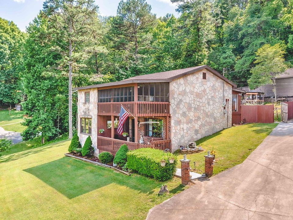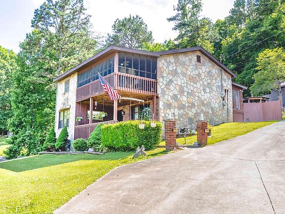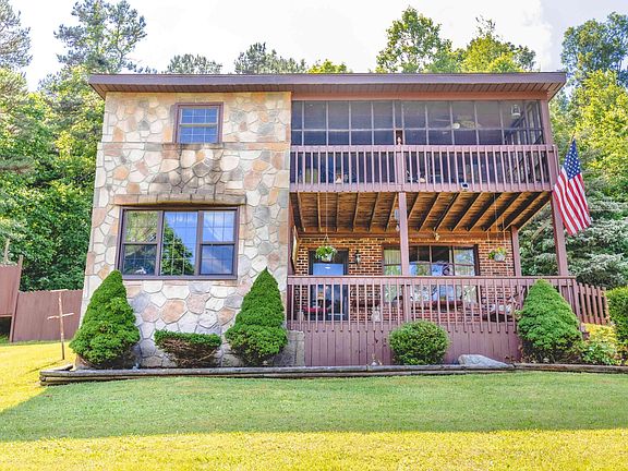 New Roof on ALL structures!!! What an amazing view from this truly unique Spanish style home sitting on a total of 42.8 acres. The home is a 3 bed, 1.5 bath, (half bath easy converted to full bath) with office or bonus room,that has been recently remodeled. Among the unique features of this home are etched mahogany doors, Brazilian cherry hardwood, and Spanish tile flooring, gas fireplace, stone sink, and separate building for the workout room and hot tub. Enjoy views from the 2nd floor screened porch all year around. To the right of this home, there is a 3 car detached garage large enough to store your boat, and a 12 by 24 unfinished room above that could be easily finished for additional living space.