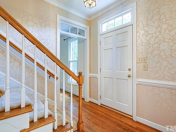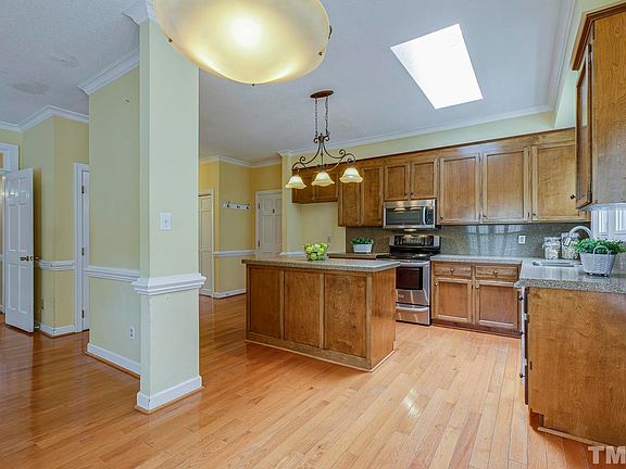 Something special in popular Lochmere! Custom built home beautifully situated on a level, landscaped, partially wooded, .55 acre lot! Light/bright kitchen with skylight, island and pantry. Sunny breakfast nook. Custom built-ins surround the masonry fireplace in family room. Formal dining + office/living room. Spacious primary bedroom. Huge 21x18 bonus/4th bedroom. Finishable walk-up attic. Oversized, side entry garage. Private/scenic back deck. Amazing amenities. Incredibly convenient Cary location!