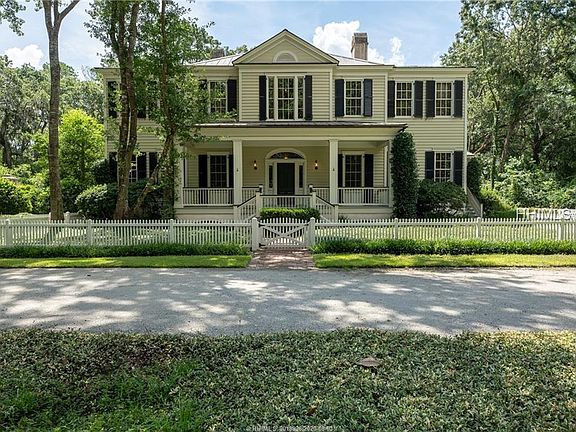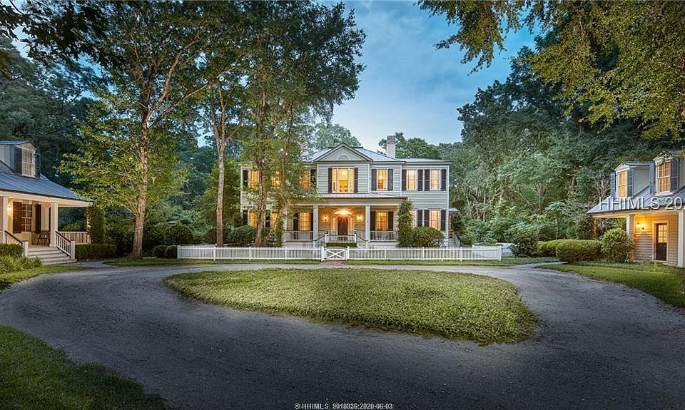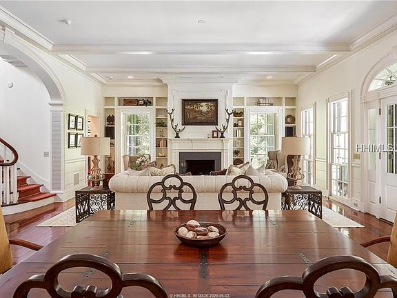 This unique estate, designed by Historical Concepts is comprised of three buildings on 2.79 acres on Spring Island. The main house is based on the Federal style homes found in nearby Beaufort. The compound has a simple, symmetrical formality with the guest house & carriage house flanking the main residence. The interior features traditional formal millwork, highlighted by a dual cantilevered staircase, with exquisite antique heart pine flooring throughout. The master suite with fireplace includes an office, exercise room, morning kitchen & porch with views to the golf course.