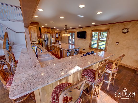 Take a tour of this magnificently remodeled home that's simply stunning and move in ready. First, the home sits up on a ridge with 360 degree mountain views. Wheeler Peak, Baldy Mountain, and Agua Fria Peak are all visible from the large front deck and through the many windows of the home. Additionally, Angel Fire Resort's 6th hole tee box is only a few hundred feet away, which is perfect since this home is ready for your toys with its' 3 car garage. Furthermore, the 3rd garage features a front and rear garage door, making it ideal for golf carts or ATVs. Inside you'll find a completely remodeled home. The home was completely redone and everything was replaced. It looks beautiful! The spacious great room features an expansive cathedral type ceiling, a large window wall, a sitting area and a stacked stone, wood burning fireplace. Another sitting area, perfect for game nights, sits off to one side of the great room with French doors leading out to the front deck. The kitchen will satisfy the most discerning chef with ample custom cabinets, walk-in pantry, granite countertops, a large prep island with sink, stainless steel appliances and a professional Thermador range. The master bedroom is on the main floor with a tongue and groove wood ceiling, a walk-in closet and an ensuite bathroom with custom tile and cabinets, dual sinks, a deep soaker tub and a walk-in shower with dual shower heads. A guest bedroom with ensuite bath and laundry room round out the first floor. Finally, the upstairs features a large loft area with expansive views of the Moreno Valley plus 2 more bedrooms and bathrooms, one is ensuite. This property needs to be seen in person to fully appreciate the attention to details this remodel undertook in making this home equal to a new construction at a fraction of the cost!