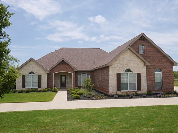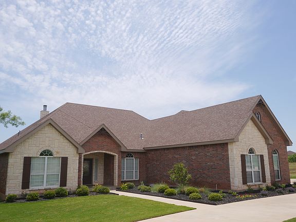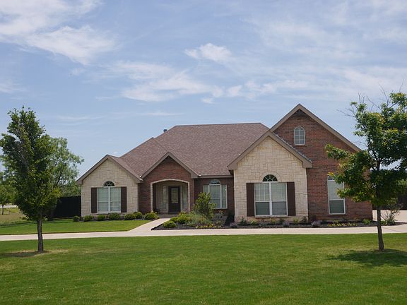 Wylie West on an acre in Mountain Shadows Estates! Formal dining area adjacent to foyer. Living offers a corner fireplace. Breakfast area windows look out to back yard. Kitchen boasts a built in desk, island, & pantry. Master bedroom at ground level offers room for desk or sitting area & direct access to back yard & patio. Double sinks, corner tub, separate shower & large walk in closet complete the master bath. Two additional bedrooms & bath in split arrangement downstairs. Laundry with sink. Oversized three car garage. Upstairs is versatile layout with a large bedroom & walk in closet. Opposite upstairs wing offers a full bath, media room + a room great for study, exercise, hobbies... you choose!