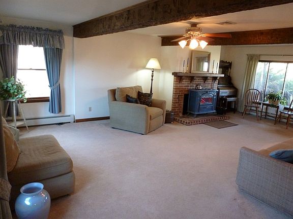 Plentiful Country Views from the windows of this Farmhome. Overly spacious Kitchen with gorgeous Wormy Oak Flooring, original 1840's Log Walls exposed, Franco Belge coal/wood stove. Windows/Roof/AC/Heating all replaced 2001, Office OR 5th Bedroom on Level 1 with private outside entrance. Private Baths in the Master & Bedroom #2. Both front and back porches from which to enjy the seasons. Oversized 2 car garage. Tall upper cabinets in kitchen. Water & Electric to Bank Barn, Original Summer Kitchen used as Playhouse, Electric to small outbuildings. Walk up attic. 1 year First American Home Warranty. All that'smissing is you.