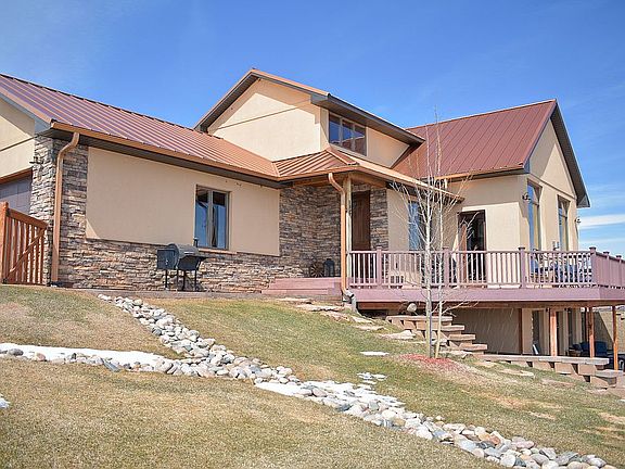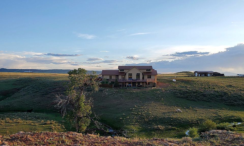 Quality craftsmanship at its best in this rare find on the outskirts of Laramie, WY within the Harney Creek Ranch. This beautiful custom-built home on 35 acres has a creek flowing thru the property into its own pond! ICF Foam Block Construction, offering superior insulation. Built with copper colored steel roof and all stucco exterior with fenced in yard. Shimmering stained concert floors, granite countertops in spacious kitchen with high end appliances and large pantry. Fabulous views from 2 decks, this majestic 3 story home also has a Greenhouse, 1050 sq ft shop and 2400 sq ft barn with lean to. Three car attached garage. The 35 acres is fenced and ready for horses. This home greets you with floor-to-ceiling stone fireplace in the living room framed by large windows which focus is on the beautiful Buttes. The lower level of the home will afford you entertaining at its best! Complete with bar area, two bedrooms and a full bath! A wonderful walk out deck to enjoy spectacular views and horseshoe pit. The upstairs has 2 guest rooms with loft barnwood finished window seating. The finishes and amenities in this custom home are stunning with views to match. Scroll slowly through the photo gallery! All measurements are approximate.