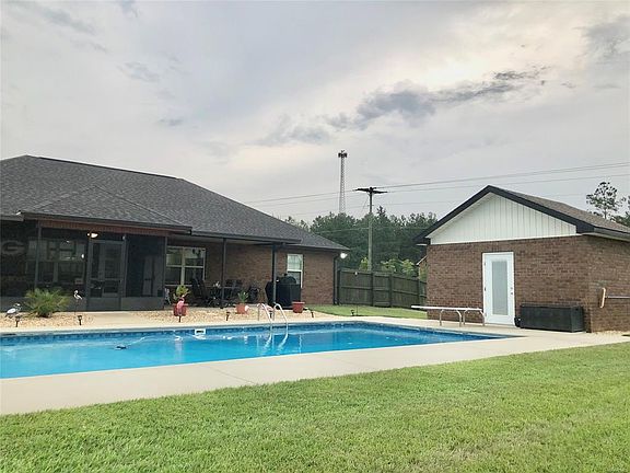 Must see beautiful home in Stonechase Subdivision. The home is situated on a corner lot with a large saltwater pool that includes a diving board and 9 ft deep end. Screened in porch and additional covered patio area create an excellent outdoor living space. The interior of the home has cathedral ceilings with beautiful wood beans, open concept and split floor plan for privacy. The main living area has a formal dining area and breakfast nook. The kitchen includes a granite island, great for extra countertop space or seating, under cabinet lighting and stainless steel appliance to include a gas stove. There are Granite countertops not only in the kitchen, but in both bathrooms. Master bathroom has double vanities, garden tub and large separate tile shower. Large walk in closet. The home has surround sound, security system, sprinkler system, programmable thermostat, Lennox gas furnace and Gas water heater help save on utilities. Two car garage with an extra parking pad beside the garage. Enterprise City Schools! May be HOA fees of $50