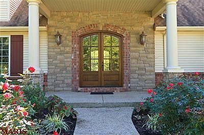 Welcome to Paradise! Beautiful six bedroom, 6 bath 1.5 story on over 8 acres, adjacent to another 8+ acres of common ground w/ subdivision lake. One of a kind custom built home with 5500+ sq. ft. of finish, big enough for even the largest families. Double wood doors welcome you to the stunning grand entry w/ travertine tile floors. Beyond that is an open floor plan with a large brick and stone gas fireplace in the family room. The kitchen is a cook's dream with a gas cooktop, double oven, stainless steel appliances, granite countertops, breakfast bar, and custom cabinetry. A covered cedar porch with cedar siding/floor/ceiling is just off the dining room and perfect for family/friend get togethers or just relaxing & enjoying country living at it's best. There is a large bdrm/den & full bath just over the garage, perfect for older kids or extended family. The finished basement has a wet bar, large bedroom & full bath and family room, plus plenty of room for storage. A MUST SEE!