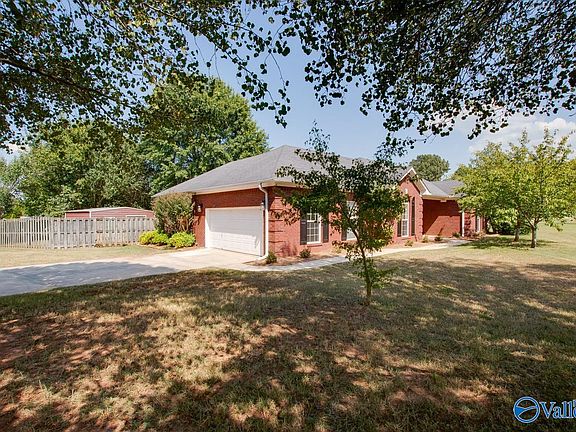 Charming 3-bedroom, 3-bath brick home located just 20 minutes from downtown Huntsville, 12 minutes from MidCity, & 15 minutes from Redstone Arsenal Gate 9. This home features a cozy gas fireplace & LVP flooring throughout, along with fresh paint. The spacious living room boasts 10 ft ceilings for an open, airy feel. Relax on the covered porch or enjoy the fenced-in backyard with a 12x24 storage unit for extra space. The master bedroom includes recess lighting, while the master bath offers a luxurious whirlpool tub. With its prime location & modern amenities, this home is perfect for those seeking comfort & convenience! New Roof 12/12/2024 Architectural shingles/transferable warranty!