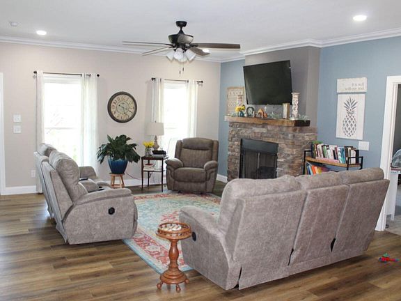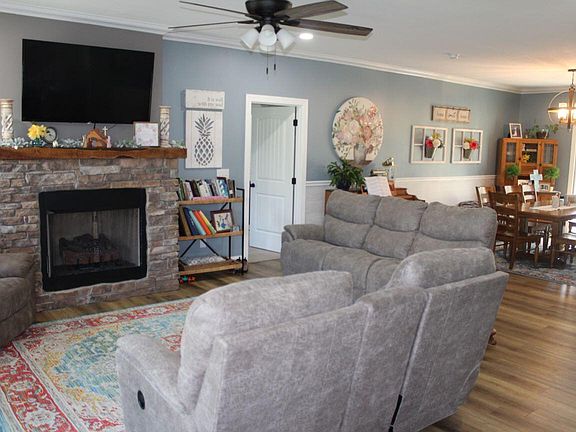 (Almost) new construction, built in 2022, this farmhouse style home in the desirable neighborhood of Sugarwood has a lot to offer. You are invited to an OPEN HOUSE this Sunday, May 28th, 2023 from 2pm to 4pm! The home was custom built, but the sellers are having to move due to a job change. This custom designed house plan offers 3104 square feet of finished living space with the master suite, living room, dining room, kitchen, den, laundry room, and pantry all on the main level (which has 9 foot ceilings throughout) - plus the oversized 3 car garage. The floor plan is an open concept, so the home feels airy and light as soon as you walk in. High end commercial grade luxury vinyl plank flooring is throughout the main level, with the exception of the super plush carpet in the master bedroom. The master bath is large with soaker tub double vanitiies, 5 foot shower and his & hers walk-in closets. The kitchen boasts lots of cabinet space including a desk area. The laundry room is a dream- its huge and comes with even more cabinets and a folding area. Just off the laundry room is a great pantry. Upstairs offers 4 spacious bedrooms, each with its own walk-in closet (again with the luxury vinyl plank on the stairs and in the walkways and the bathrooms - carpet in the bedrooms). There are also 2 full baths plus an additional room that could be an office plus it is wired and plumbed for a washer & dryer if you'd like an upstairs laundry too. Off of one of the bedrooms is a huge storage room that is over the garage. There is additional storage in the crawlspace (even drive in for a mower) under the master bedroom wing. The home has built with low maintenance in mind - it is mostly brick and all the posts and railings are vinyl and aluminum. All this sits on a 0.85 acre lot with nice views of the countryside and rolling hills across the street. Convenient to everything as its just 2 minutes from the interstate. Come check out this beautiful (almost new) home today!
