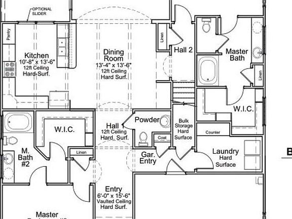 TWO PRIMARY SUITES ON MAIN LEVEL! Luxury Hardwood Style Flooring Thru Main Downstairs Living! Gourmet Kitchen: 12' Ceiling w/Beam Detail, "Pietra" Quartz Countertops, "Stone Grey" Custom Cabinets w/Soft Close, Tile Backsplash, SS Appliances Incl Gas Cooktop & Built in Oven/MW Combo & Butler's Pantry! PrimaryBed: Private Alcove Entry, Vaulted Ceiling, Plush Carpet & Fan! PrimaryBath: Tile Flooring, Dual Vanity w/Quartz, Tiled Walk in Shower, Custom Cabinets & Spacious Walk in Closet! Great Room: Arched Entry, Vaulted Ceiling & Access to Rear Covered Porch! Dining w/Beam Detail Ceiling! Unfinished Walk in Attic Storage!