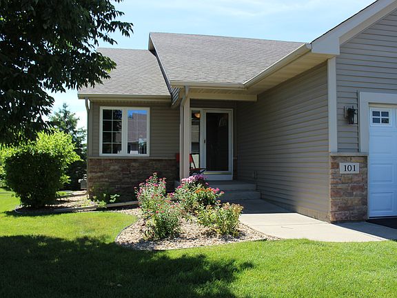 Enjoy this 4BR/3BA twinhome w/2800fsf! Former model offers tons of upgrades: Vaulted ceilings, tongue and groove ceiling, custom paint, central vac, granite center island, tiled back splash, granite and tile counter tops in bathrooms, tiled counter tops in laundry room, gas fireplace, sunroom & finished lower level, including updated bathrooms, and kitchenette. Utility room has additional washer hook up for lower level use. Range and dishwasher less than 5 years old, new large water heater less than 2 years old. Great views of Buffalo Lake with a green space park across the street. This home offers one level living in a highly desirable location.