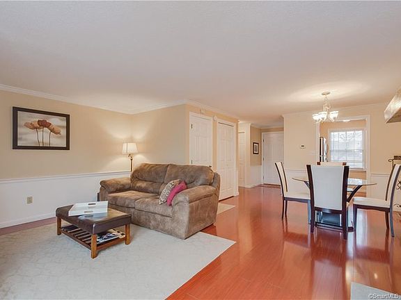 Welcome to your fantastic, move in ready, updated town home! The 1st floor features beautiful wide plank floors, nice kitchen with stainless appliances and living room with fireplace and slider to the deck backing to the woods. Upstairs are 2 bedrooms and a nicely finished full bath. Downstairs is a large, full, unfinished walkout basement that could easily be finished as a man cave, family room or home gym. There are updated mechanicals including gas furnace and H20 and a newer Lennox Central air system! Low condo fees! Convenient location 2-3 minutes to 91, Target, Stop and Shop, etc. Guest parking right outside the front door. This is a great unit and the only one for sale at Strawberry Hills, come make it yours today!