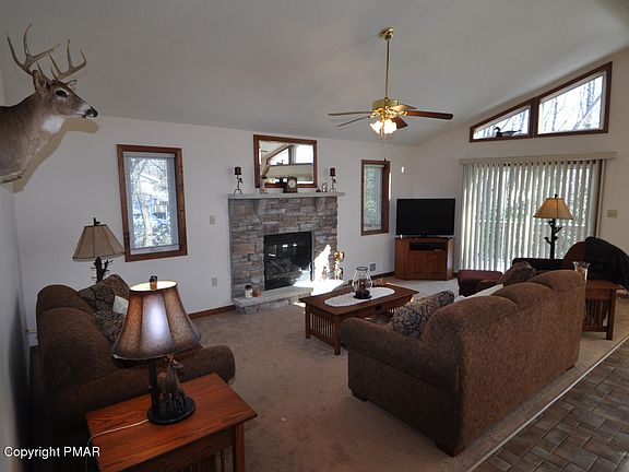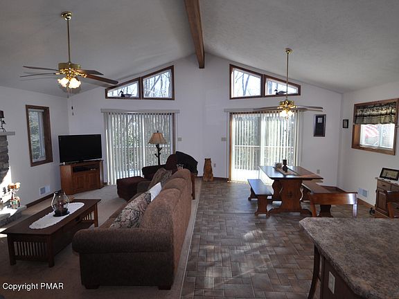 Beautiful 3 bedroom/2 bath PROW FRONT RANCH with CENTRAL AC & FORCED HOT AIR in Pleasant Valley West on a combined total of 2.16 ACRES (sale includes adjacent lot E448 Susquehanna)! This charmer features an OPEN CONCEPT design with VAULTED CEILINGS & EXPOSED BEAMS! Cozy up by the STONE-FACED PROPANE FIREPLACE! Relax in the MASTER SUITE! Front sliders provide plenty of natural light and lead onto the sprawling WRAP-AROUND FRONT DECK! UTILITY SHED for all of your storage needs! Surrounded by rhododendron and tall trees, tucked away on a curved driveway, this home provides serenity and seclusion on a private lot! Enjoy all the area has to offer...hiking, biking, rafting, skiing, Hickory Run State Park, downtown Jim Thorpe, & more! Minutes to PA-Turnpike! Schedule your showing today!