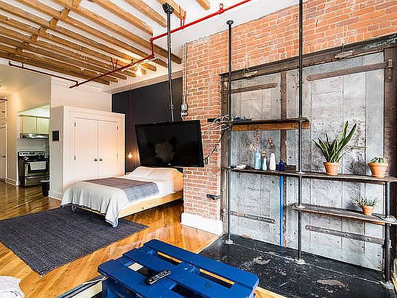 This gorgeous loft has been meticulously renovated to reveal it's beautiful & unique characteristics showcasing the massive stripped wood beams and sand blasted brick walls.features a large open floor plan with a modern kitchen featuring stainless steel appliances including dishwasher. There is a beautiful black and white tiled bathroom with a large shower. The alcove makes an ideal bedroom area. The building has a freight elevator for moving in and laundry room in the basement. 2 blocks to Mcgolrick park and 10 minute walk to Nassau G train station and Mcccarren Park. Available furnished or unfurnished! 6 month minimum lease