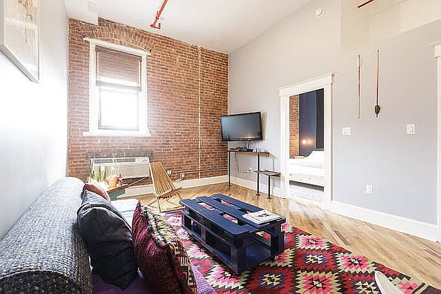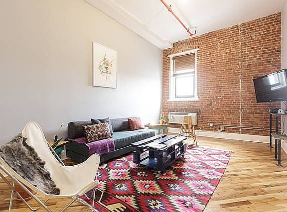 Amazing loft in converted Cork Factory! True loft living. Currently furnished, the loft can be rented with or without furniture. This 2nd floor loft features a large open kitchen living room area. There are amazing architectural features throughout such as high ceilings, stripped wood beams and exposed brick. There is a modern kitchen with stainless steel appliances including dishwasher. There is a separate cozy bedroom that accommodates a queen sized bed. The building has a laundry room in the basement and a freight elevator available to use by appointment. 2 blocks to Mcgolrick Park and a short walk to the Nassau Train and Mccarren Park. Leases from Six months and longer
