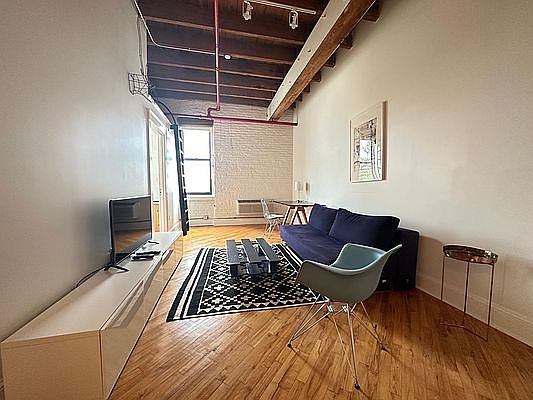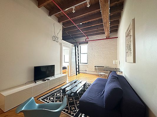 The loft features a large open living area, alcove kitchen featuring stainless steel appliances including dishwasher, bathroom with a large shower. The bedroom fits a queen sized bed and has phenomenal city views. The building has a freight elevator which can be used by appointment with the buildings superintendent, a laundry facility on-site, and bike storage in the basement. Located on a quiet street just 2 blocks from the lovely McGlorick Park, where there is a farmers market every weekend. The loft is walking distance from many trendy restaurants and bars, one block to the bus, and an 8 minute walk to the Nassau G train. Also a short walk to most of the film and production studios in Greenpoint. It is also in very close proximity to North Williamsburg and all of the shops, entertainment and nightlife. Smoking allowed:No