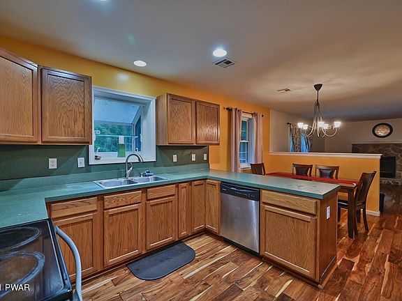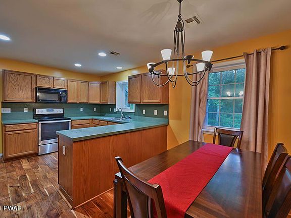 Located on a quiet cul-de-sac, this charming colonial home features 4 bedrooms and 2 1/2 baths, a family room with stone faced propane fireplace, living room, dining room, and central air conditioning. Beautiful hardwood, tile and carpet flooring. Spacious Master BR Suite with private ensuite bath. Large partially finished basement with 2 car garage. ''Like new'' propane furnace installed two years ago. Perfect for year round or vacation home. Only a few minutes away from Bushkill Falls and other Pocono attractions. This home is waiting for you!