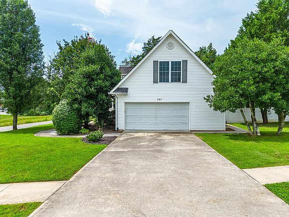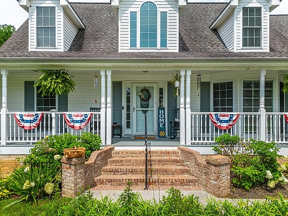Front porch goals! This home has the perfect setting to enjoy your morning coffee or evening sunsets with 2 oversized porches that wrap almost all the way around the house. There are also 3 sets of french doors to access the back deck, including one in the primary bedroom! This classic cape cod layout is open and airy with vaulted ceilings in the living room and the cat walk upstairs. Downstairs you will find the primary suite, complete with a walk in closet, jetted tub, and double vanity. Upstairs you have two additional bedrooms, hall bathroom, and a bonus room great for extra hangout space, storage, or an office. There is an oversized side yard with a garden, storage shed, cafe lights over the stone patio, running fountain, and grill area.