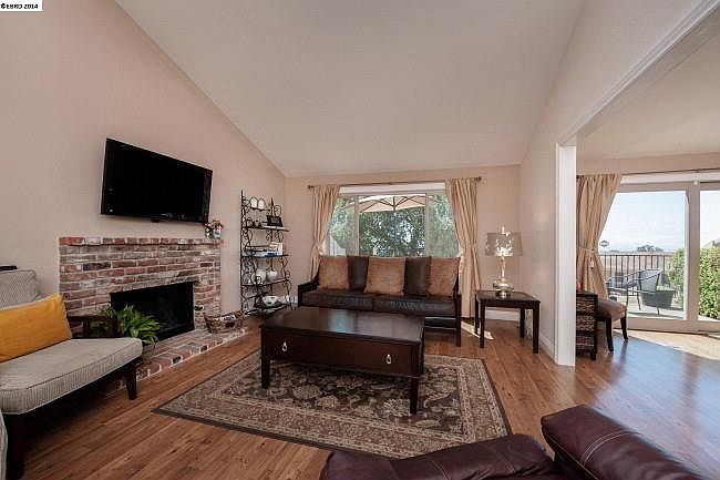 All level living with San Francisco view. Sophisticated, updated end unit. Spacious Living Room and Family Room with vaulted ceilings. Beautifully remodeled kitchen with Stainless Steel appliances, ceasar stone counters and glass backsplash. Outdoor living at it`s best on the patio, San Francisco and Bridge vistas. Close to regional park, hiking and biking trails. Central air common pool..