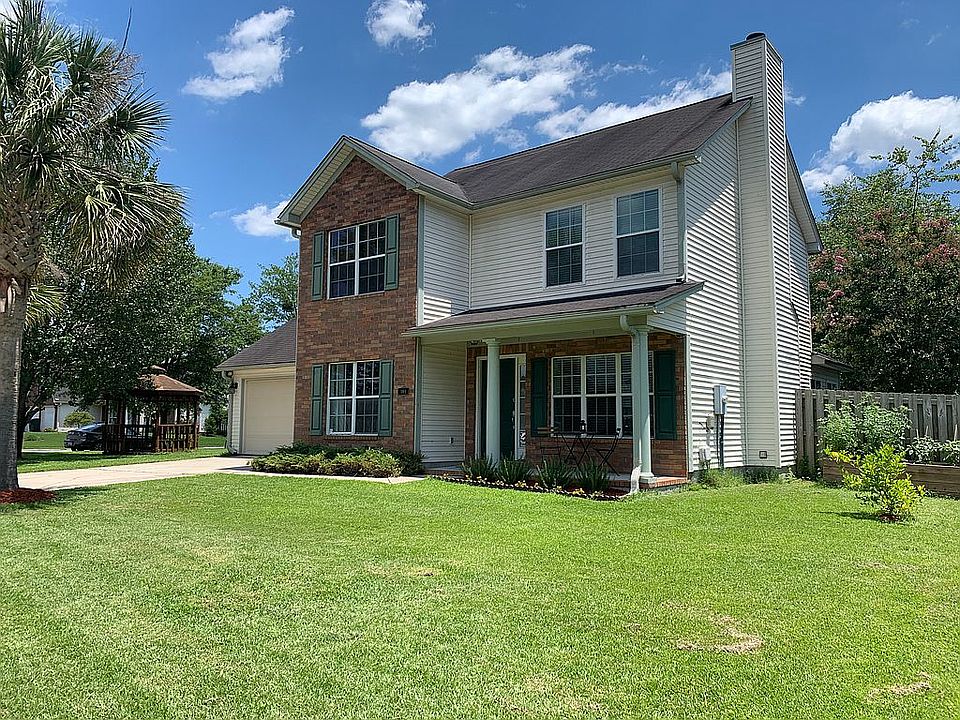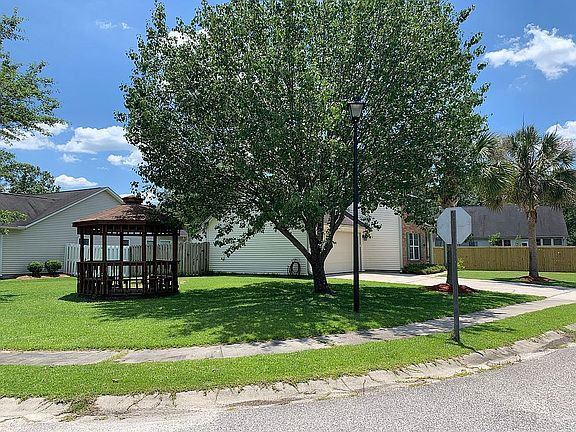 Walking distance to shopping, restaurants, banks & more. Situated on a corner lot with a gazebo and fire pit to entertain friends and neighbors (socially responsible of course). When you enter the home you are greeted by wood grained tile floors, a central fireplace with built in book shelves and soft designer colors. The kitchen features, granite counter tops, stainless steel appliances and a walk in pantry. The chic dining room has wainscoting & crown molding. The owners suite has a vaulted ceiling and en suite w/ walk in shower & garden tub perfect for a glass of wine and a good book. The 4 season sunroom leads to a stamped concrete patio. Goose Creek fitness center is $60/yr and has programs for all ages. Enjoy a movie or symphony under the stars or a game of golf. This is living!