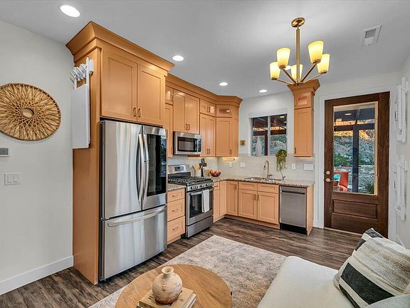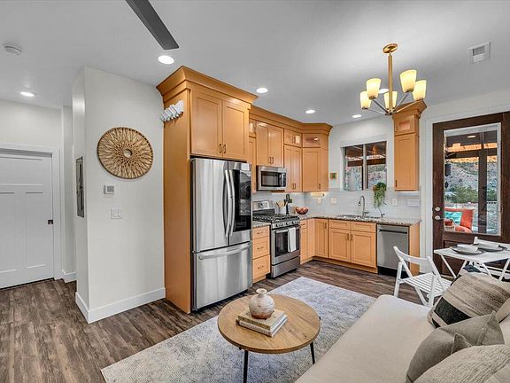 Experience life beneath the towering red rocks in this thoughtfully curated space, where every detail has been artfully designed with efficiency and beauty in mind. Soothing colors compliment the natural beauty of the outdoor landscape. Artistic touches abound, ranging from a custom mural created by the award-winning artist, Ellen Gianni Nelson, to gorgeous functional design crafted by renowned designer Catalin Sandu. Ample storage and low maintenance living make this space ready for you to move in and start enjoying immediately.