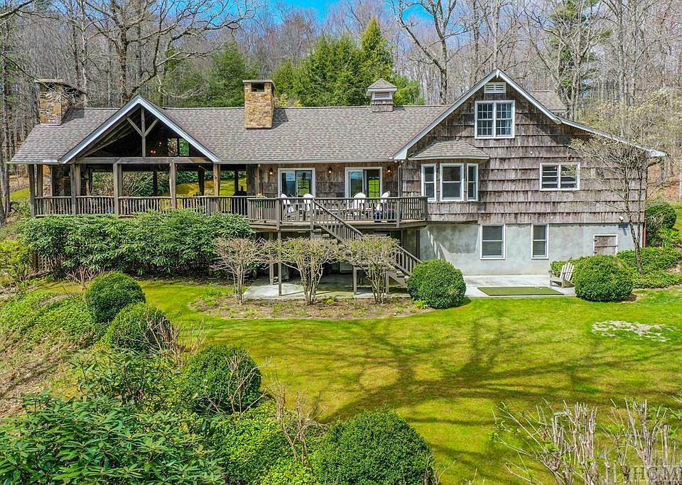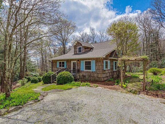 Sited at 4,010 feet in elevation, this chic storybook cottage sits on 3.86 private acres. There are 4 bedrooms, 3 1/2 baths in the main house which has been lovingly restored. The main level boasts a large great room which opens out onto an open deck which faces East overlooking a level yard perfect for lawn games. A huge covered outdoor deck flanks the other side of the great room and has soaring cathedral ceilings, stone, wood burning fireplace, and a massive twig chandelier. The large primary suite is on this main level. The large, open kitchen has been completely remodeled to include quartz countertops, farmhouse backsplash, all new appliances and an island covered reclaimed Elm. The laundry area and half bath are also on this main level. The upstairs has 2 large bedrooms and bath. The lower level has "grandpa's suite." A hidden trail winds down to a stream. Tucked away from the home via another trail sits a small cottage which has been converted to an artist studio/guest cottage and bath and includes a private deck and an outdoor shower. The entire property is dotted with native plants, flowers, and rhododendrons. There is a raised garden bed area on the property for growing your own fresh vegetables. The home and property are perfect for entertaining, both indoors and out. Come discover the mountain getaway you have been coveting.