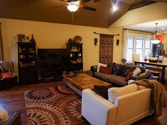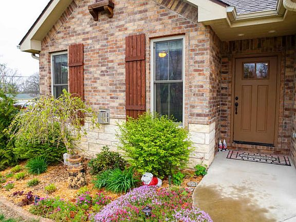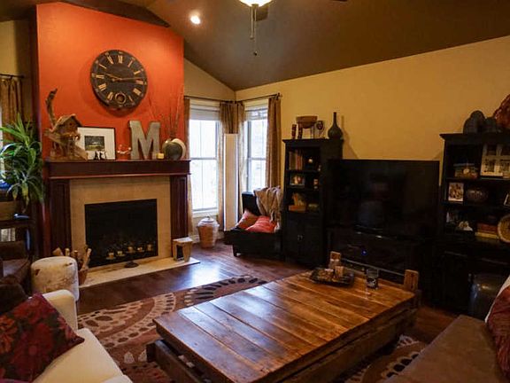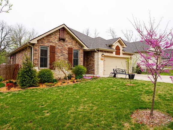 Absolutely stunning home with custom details throughout. This one is anything but a cookie-cutter style. Dramatic vaulted living room opens to kitchen with granite counters, mini bar and gorgeous glazed cabinets. Wood floors run throughout the open concept living area. You will love your large master suite with tile walk-in shower and spacious closet. Fully landscaped with irrigation system and privacy fenced yard which includes a 16 X 8 garden shed. With full brick and stone exterior this home is easy maintenance and is located just down the street from the golf course, walking trails and swimming pool. Call today to schedule your tour.
