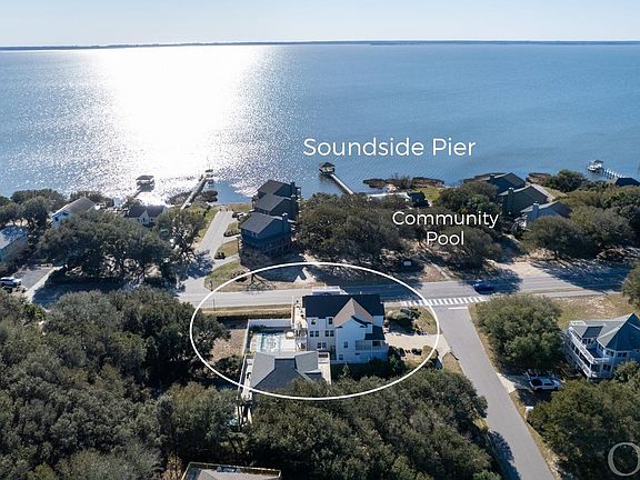 This stunning 6 bedroom, 4 bath, 2 half bath home has been lovingly cared for and offers multiple living areas, gorgeous sound views, generous outdoor entertaining space and exceptional amenities, from the two top-floor primary bedrooms to the salt water pool to the finished garage, no expense has been spared.  As you walk up the stairs to the top level, you are greeted by a spacious great room offering sound views and an updated kitchen while a fully enclosed porch allows for maximum enjoyment of the outdoors.  An extra special feature of this home is its rooftop deck offering expansive sound views for amazing sunsets!  The top floor is finished with not just one but two large ensuite bedrooms.  The midlevel boasts four bedrooms and two baths along with a second living area and wet bar, plus access to the expansive decks overlooking the sound and the pool area.  Moving down to the lower level you’ll find a large game room just waiting for all your late-night fun along with its own kitchenette and half bath and direct access to the pool area offering a large 10,000 gallon salt water pool, private enclosed outdoor shower and plenty of space to entertain!  The lower level is completed by something you don’t see often on the OBX, a well-lit, carpenter finished garage with a separate enclosed storage room. The location of this home the icing on the cake!  Located in Port Trinitie, a charming ocean to sound community in Duck, it’s just a short walk to the beach.  You will love all the amenities - tennis courts, two community pools, one on the oceanside and one soundfront, and the sound access is one of the favorite features of this neighborhood…take a stroll on the pier out to the gazebo to fish, watch the sun set after a long day or just gaze out at the water…launch your kayak or paddle board, or enjoy a few hours in the the soundside pool.  The bike path is the perfect place for a long, early morning run or hop on your bikes and spend an evening in Duck which offers some of the best dining and shopping on the Outer Banks!  With its location, quality, exceptional sound views, extensive living space, indoors and out, plus extras like a security system including cameras at each entry point, multiple outdoor flag brackets allowing you to add extra personality to your home, the convenience of a cargo lift, lots of outdoor lighting and very easy to maintain landscaping, this incredible home won’t last long!